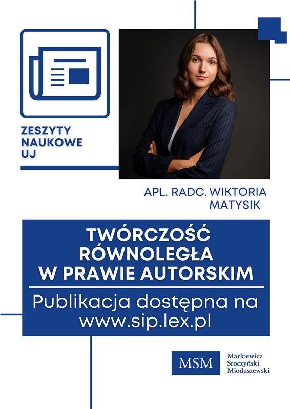 An article by Wiktoria Matysiak, a trainee legal advisor, appeared in the latest, almost New Year’s Eve issue of ZNUJ. To quote the author, “The text concerns a phenomenon (construction?) that I learned about a few years ago in one of my first copyright law classes and about which I have heard little since. Perhaps this is because many approached it with a grain of salt. But since the existence of parallel works has recently been confirmed by the CJEU itself (judgment in the MIO/konektra case), I encourage you to read it all the more.” Link to the article:https://sip.lex.pl/#/publication/151531663