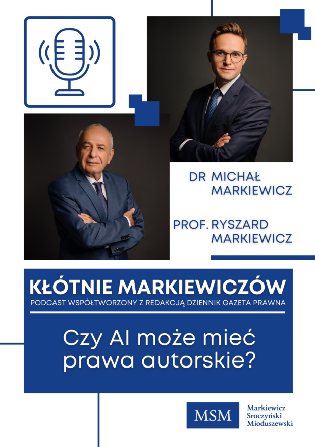 This time, together with Dziennik Gazeta Prawna, Michał Markiewicz, and Ryszard Markiewicz, we invite you to “Kłótnia Markiewiczów” (The Markiewicz Argument) and an episode in which we discuss artificial intelligence and its impact on current copyright structures, including, among others, the presumption of authorship of a work. We also consider whether copyright law in its current form can survive the development of new technology. We invite you to watch and continue the discussion. Link to the material in the comment. Link to the article: https://www.gazetaprawna.pl/wideo/klotnie-markiewiczow/wideo/10615216,czy-ai-moze-miec-prawa-autorskie-klotnie-markiewiczow.html